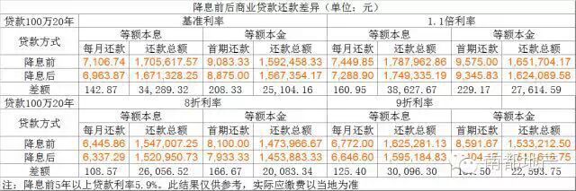此次降息后,按照商业贷款房贷100万,20年等额本息还款计算,降息前利率5.9%,月供7106.74元;降息后利率变为5.65%,月供降至6963.87元,每月减负142.87元,20年共计少还利息34289.32元。